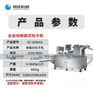 290IIAS卷面式包子機(jī),可生產(chǎn)各種不同餡料的包子、各式包餡食品,如豆沙包、南瓜餅、肉包、小籠包、水晶包等幾十種包餡制品。適用于個體戶、食品廠、學(xué)校等單位食堂。可滿足不同客戶群體。免費(fèi)提供工藝技術(shù)。
