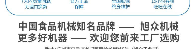廣州旭眾食品機械有限公司是一家集科研開發(fā),生產(chǎn)設(shè)計,營銷服務(wù)為一體的現(xiàn)代化生產(chǎn)企業(yè)?,F(xiàn)代化生產(chǎn)車間,精湛制造技術(shù),所產(chǎn)機械歷經(jīng)市場重重考驗,不斷贏得海內(nèi)外客戶的贊譽。