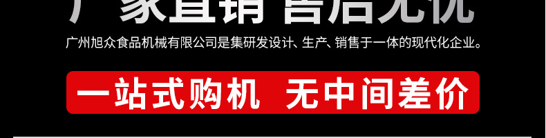 廣州旭眾食品機(jī)械有限公司是一家集科研開發(fā),生產(chǎn)設(shè)計,營銷服務(wù)為一體的現(xiàn)代化生產(chǎn)企業(yè)。現(xiàn)代化生產(chǎn)車間,精湛制造技術(shù),所產(chǎn)機(jī)械歷經(jīng)市場重重考驗,不斷贏得海內(nèi)外客戶的贊譽(yù)。