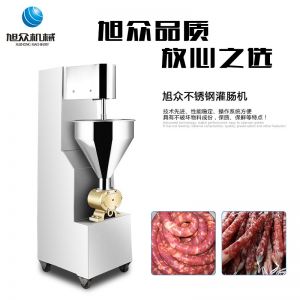 SZ-200灌腸機(jī),適合灌制各種香腸、紅腸、臘腸及糊狀制品。本機(jī)使用敞開式不銹鋼料斗,適用于連續(xù)添加物料;與灌裝手接觸部件全部采用優(yōu)質(zhì)不銹鋼制作以防生銹;該機(jī)自動(dòng)貨程度高,技術(shù)先進(jìn)、性能穩(wěn)定、操作簡(jiǎn)便、工作效率高,具有不破壞物料成份,保質(zhì)、保鮮等特點(diǎn)。