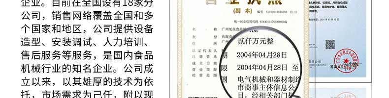 廣州旭眾食品機(jī)械有限公司是一家集科研開(kāi)發(fā),生產(chǎn)設(shè)計(jì),營(yíng)銷服務(wù)為一體的現(xiàn)代化生產(chǎn)企業(yè)?,F(xiàn)代化生產(chǎn)車間,精湛制造技術(shù),所產(chǎn)機(jī)械歷經(jīng)市場(chǎng)重重考驗(yàn),不斷贏得海內(nèi)外客戶的贊譽(yù)。