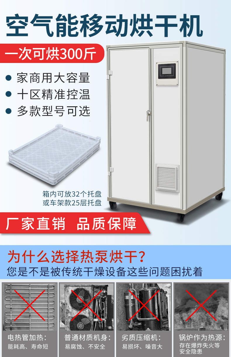 烘干抽濕一體機(jī)(帶烘房),空氣能移動烘干機(jī),一次可烘300斤、家商用大容量、十區(qū)精準(zhǔn)控溫、多款型號可選。智能烘干時代出類拔萃的新體驗