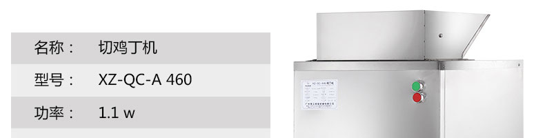 XZ-QC-A460切丁機(jī),切雞丁機(jī)適合將帶軟骨的禽類,如雞、鴨、鵝、鴿、魚(yú)類等切成塊(?。?。本系列設(shè)備工作效率高,采用不銹鋼制作,美觀耐用,切割快速,少碎骨。