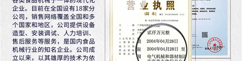 廣州旭眾食品機(jī)械有限公司是一家集科研開發(fā),生產(chǎn)設(shè)計,營銷服務(wù)為一體的現(xiàn)代化生產(chǎn)企業(yè)。現(xiàn)代化生產(chǎn)車間,精湛制造技術(shù),所產(chǎn)機(jī)械歷經(jīng)市場重重考驗,不斷贏得海內(nèi)外客戶的贊譽(yù)。