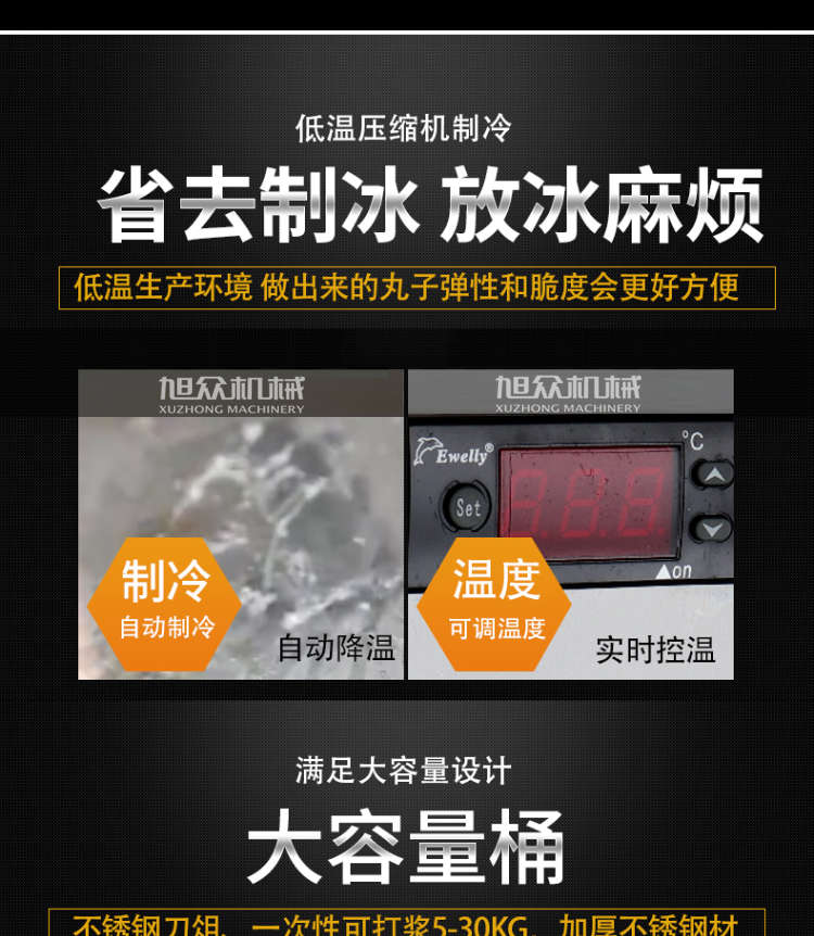 XZ-ZL-36制冷打漿機(jī),滿足大容量設(shè)計(jì),大容量桶不銹鋼刀俎、一次性可打漿530KG,加厚不銹鋼材。