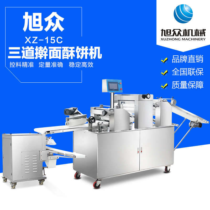 xz-15c三道搟面酥餅機(jī),仿手工制作面食產(chǎn)品的機(jī)型,占地面積小,重量輕,運(yùn)用搟面杖壓面和打擊面團(tuán),以保證高面筋性和面帶的密度,并綜合考慮面食的口感而研發(fā)。可生產(chǎn)東北糖酥餅,東北大香酥餅,蘇式月餅,芝麻餅,鮮花餅,老婆餅。購機(jī)免費(fèi)提供工藝技術(shù)