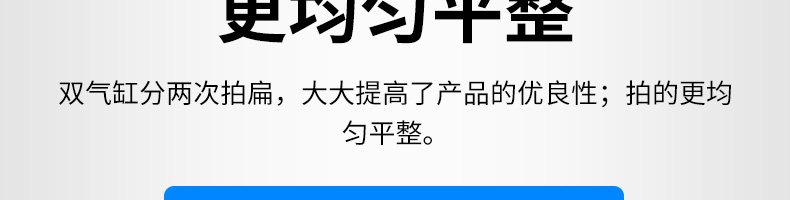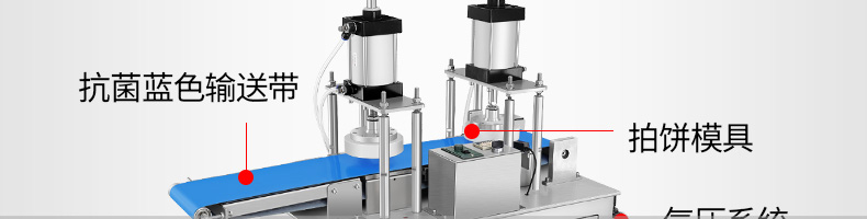 XZ-7200型雙拍餅機(jī),雙氣缸雙拍餅機(jī)雙氣缸分兩次拍扁,大大提高了產(chǎn)品的優(yōu)良性;拍的更均勻平整。搭配酥餅杋、月餅機(jī)、糍粑機(jī)使用。告別手工、更高效率。讓拍餅機(jī)改變生活,降低手工成本,省去繁瑣的手工工序,提高生活品質(zhì)。