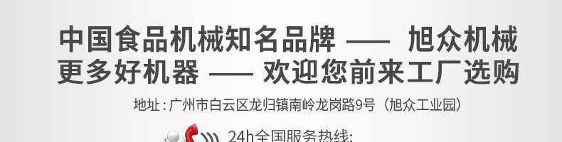 廣州旭眾食品機(jī)械有限公司是一家集科研開發(fā),生產(chǎn)設(shè)計(jì),營銷服務(wù)為一體的現(xiàn)代化生產(chǎn)企業(yè)?,F(xiàn)代化生產(chǎn)車間,精湛制造技術(shù),所產(chǎn)機(jī)械歷經(jīng)市場重重考驗(yàn),不斷贏得海內(nèi)外客戶的贊譽(yù)。