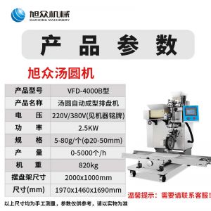 VFD-4000B湯圓機(jī),定量準(zhǔn)確自動(dòng)搓圓排盤(pán)成型大小均勻口感柔滑。可制作各式包餡食品,如湯圓、芝麻球、豆沙包、南瓜餅、奶黃包等