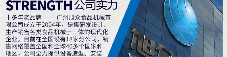 廣州旭眾食品機(jī)械有限公司是一家集科研開(kāi)發(fā),生產(chǎn)設(shè)計(jì),營(yíng)銷服務(wù)為一體的現(xiàn)代化生產(chǎn)企業(yè)。現(xiàn)代化生產(chǎn)車間,精湛制造技術(shù),所產(chǎn)機(jī)械歷經(jīng)市場(chǎng)重重考驗(yàn),不斷贏得海內(nèi)外客戶的贊譽(yù)。