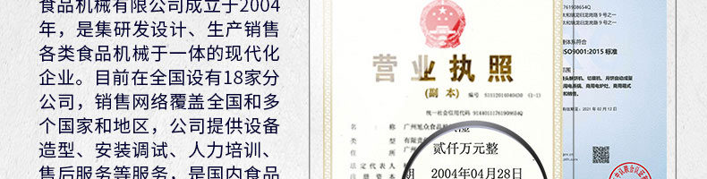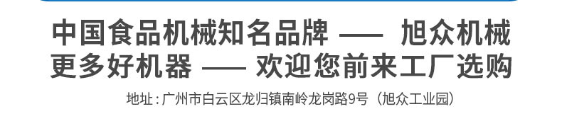 廣州旭眾食品機(jī)械有限公司是一家集科研開發(fā),生產(chǎn)設(shè)計(jì),營(yíng)銷服務(wù)為一體的現(xiàn)代化生產(chǎn)企業(yè)?,F(xiàn)代化生產(chǎn)車間,精湛制造技術(shù),所產(chǎn)機(jī)械歷經(jīng)市場(chǎng)重重考驗(yàn),不斷贏得海內(nèi)外客戶的贊譽(yù)。